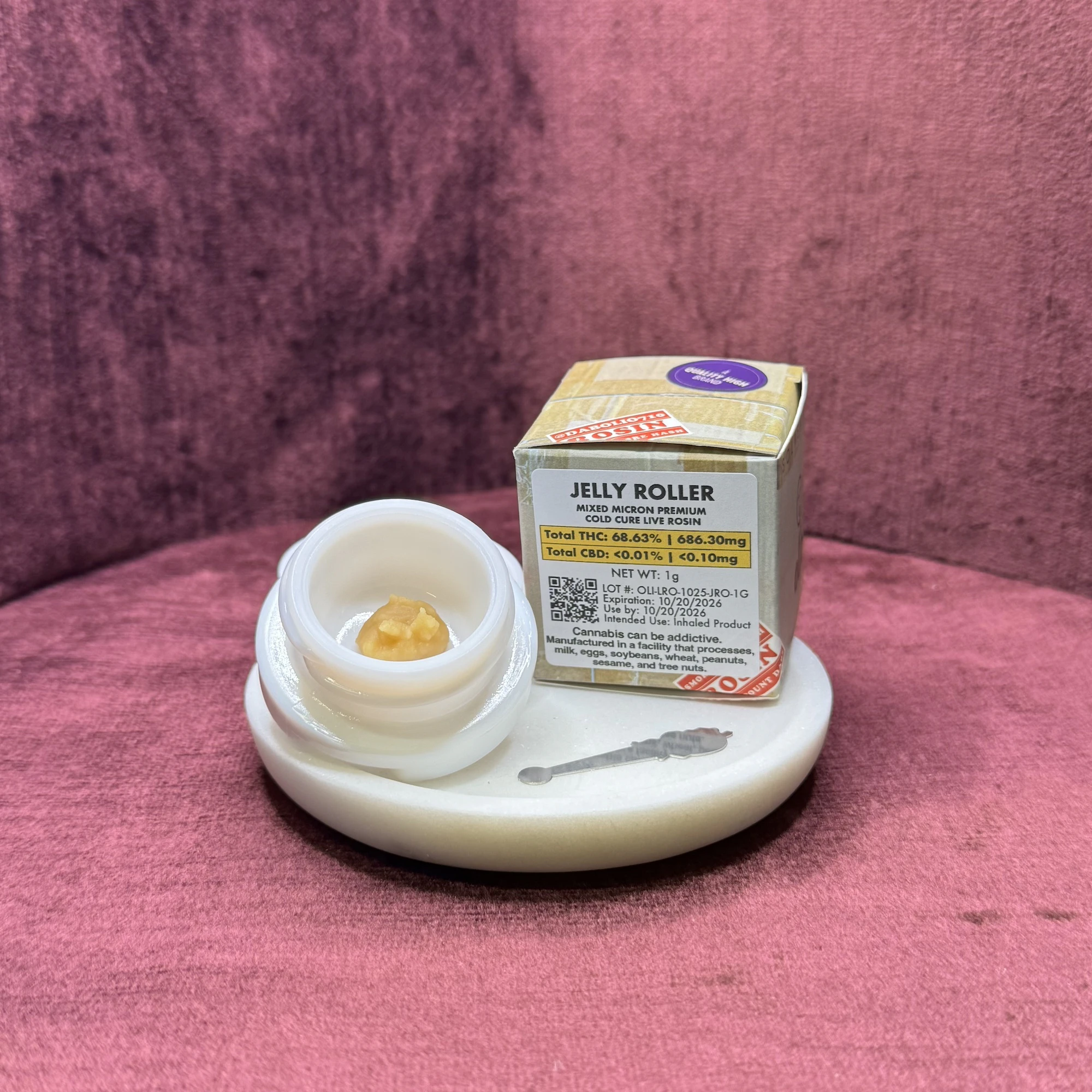 1 Gram top shelf Live Rosin Straw Jelly is a hybrid strain (50% indica/50% sativa) created through crossing the powerful Sour Strawberry X Jelly Breath strains.