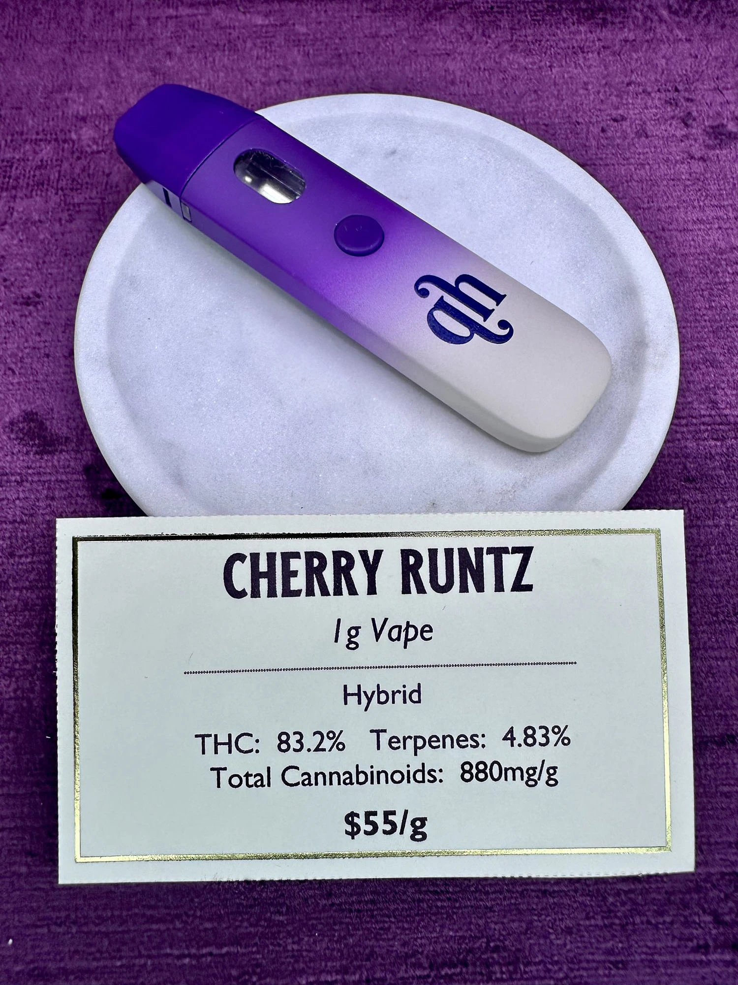 Sweet cherry layered with tropical fruit and a hint of earthiness. Expect an uplifting, happy buzz paired with stress-relieving calm and smooth body ease. Balanced and social, this vape delivers flavor and feel in equal measure.