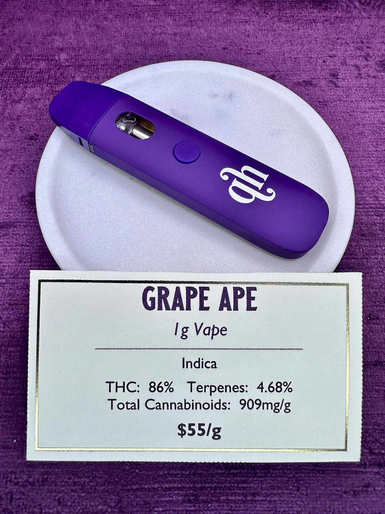 Bold grape and berry flavors with earthy undertones. Known for its deeply calming effects, Grape Ape delivers soothing body relaxation paired with a mellow, stress-relieving high. Smooth, flavorful, and perfect for settling into a state of ease.